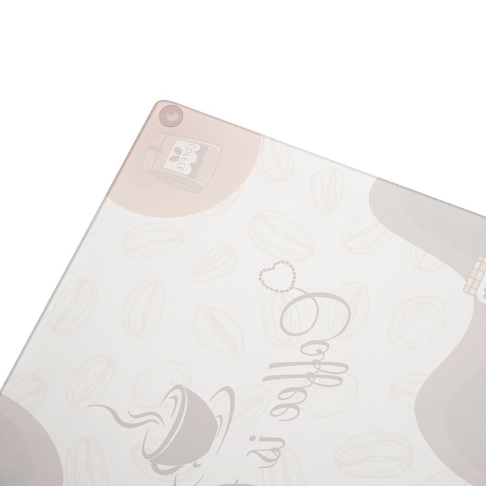 ウォームブラウンとオレンジを基調とした暖色系デザインで、キッチンに心地よいカフェの雰囲気をもたらします。散りばめられたコーヒー豆のパターンが、まるでお気に入りのカフェにいるような癒しの空間を演出。
